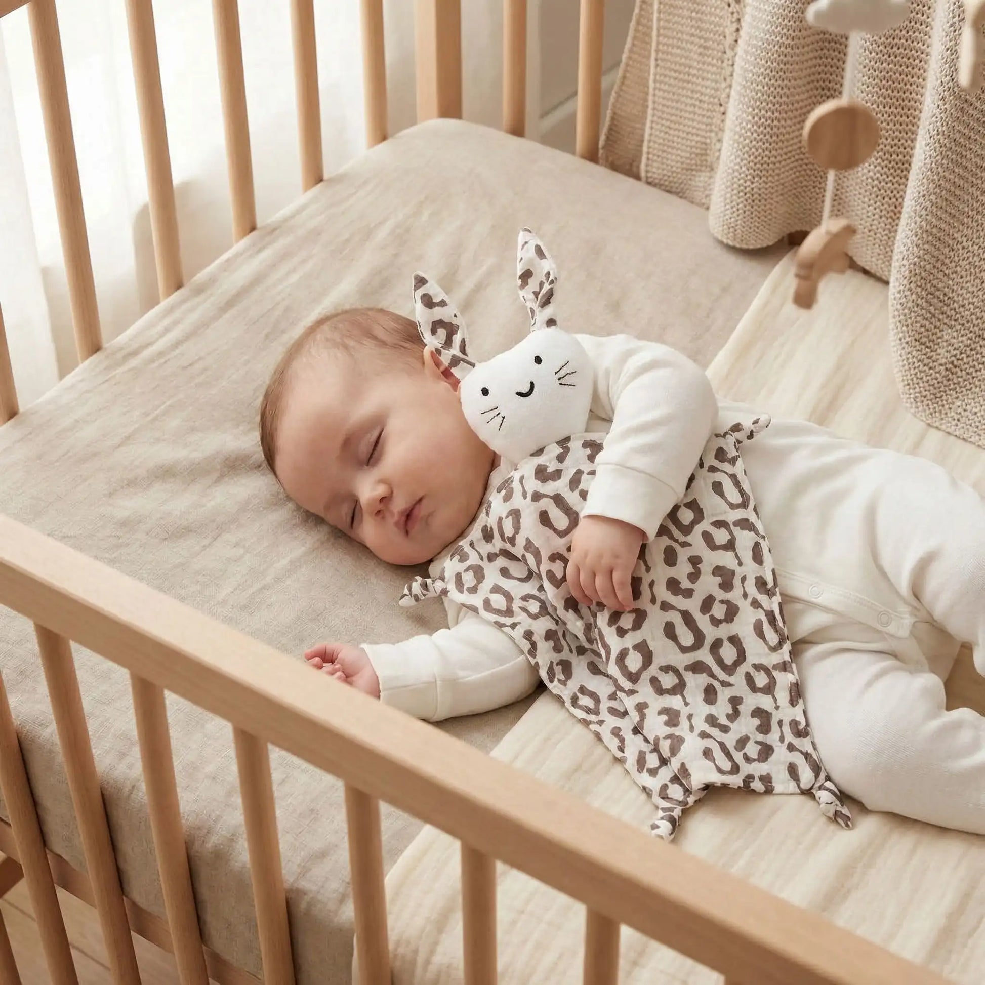 Avec ses longues oreilles faciles à saisir et à suçoter, sa forme reconnaissable et sa douceur inégalée, le lapin répond parfaitement aux besoins sensoriels des tout-petits.